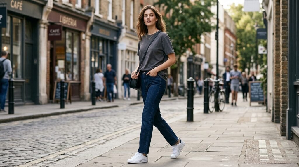 Properly-fitted denim with a clean wash appears to be much higher than ripped ones. Straight-leg cuts are modern-day and weightless. The shade is a darkish blue or black, which offers it a classy look. It is not formal, yet polished.