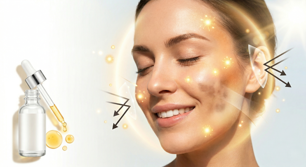 Your skin uses Vitamin C as its illumination source because it works like a skin light bulb. The compound protects against sunlight damage by eliminating free radicals while it also causes sunspots to disappear and users who apply a stable L-ascorbic acid serum every morning can expect to see visible skin radiance after two weeks of use.