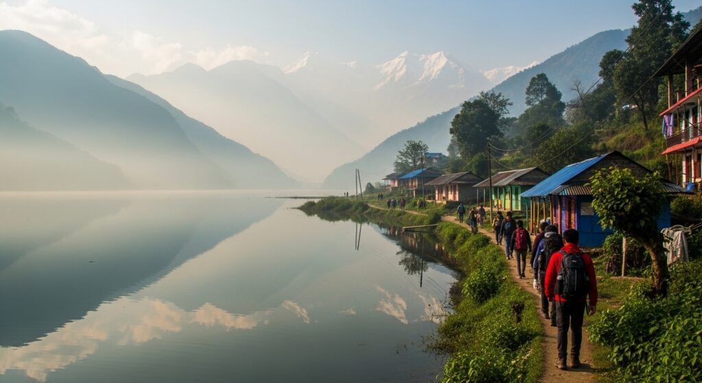 Pokhara is a damsely resort and is very serene of beautiful himalayan surroundings. It is perfect as a cost effective location since it consists of low end guesthouses, simple home meals, and track walks where people can walk through the beautiful sceneries.