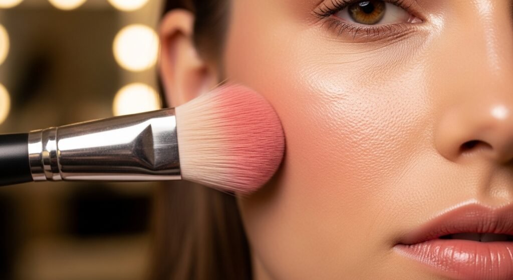 Blush will make you look alive again. A light pink or peach color on the cheeks will produce a natural blush that will make your skin appear fresh and bright. It immediately raises your face and gives coziness to your entire make-up.