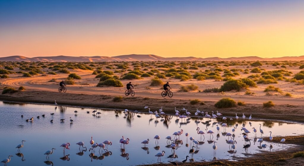 Have a relaxing break and visit Al Qudra Lakes. It is a quiet location without any noise such as in the city and where one can enjoy an easy time watching the birds or riding a bike.