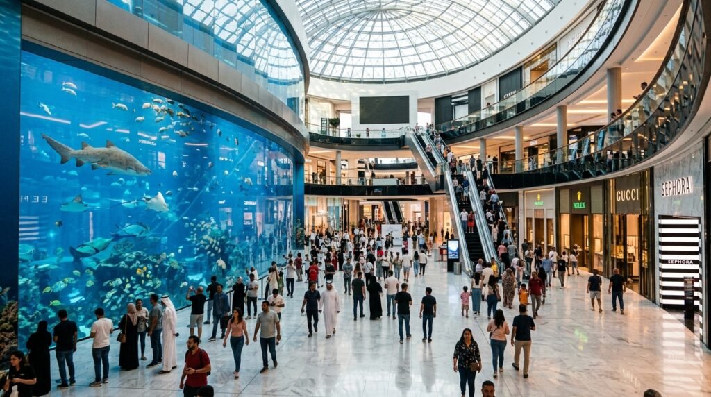 Dubai Mall is also a place to visit without necessarily having to make purchases. It does not appear as a mall which has vast interiors and separate exhibitions and street performances.