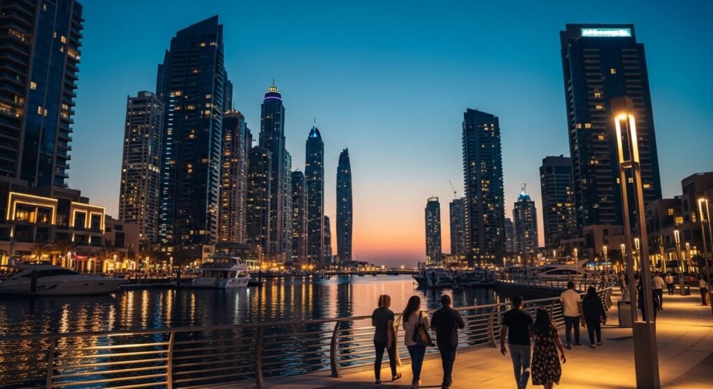 It is a beautiful scene especially when one is strolling around the Dubai marina during the evening. High-rise buildings put it in the heart of the waterside cafes and this is just perfect as far as photo making and having leisurely walk is concerned.