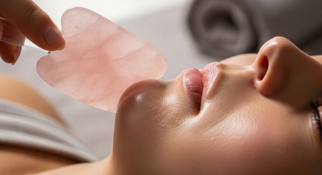 Before the use of gua sha tool, there should be a preliminary clean on the skin. The face cleaning also removes the dirt and the oil and make up which would have been pressed into the pores during the massage. Clean skin will result in smooth sliding of the tool and the routine will be hygienic.