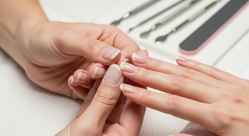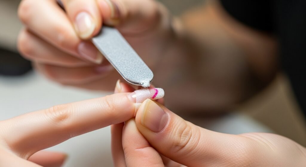 Clean and dry nails should be used, as there should be good adhesion. Apply polish carry away old polish, press cuticles down, polish surface of nails a bit. This will help in wrapping stick in a straight manner and in extending wrapping life without lifting up the ends.