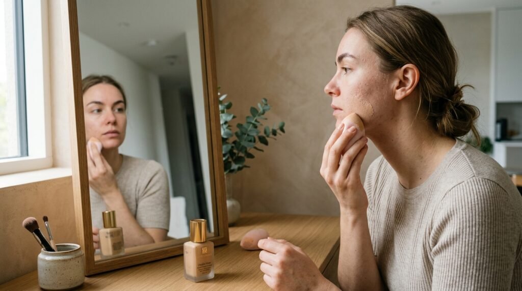 The urge to grab the thickest foundation and conceal each and every freckle is very tempting, yet it can occasionally make one look like a mask. Layering a thick coat on the whole face may sink into the fine lines. A light hand and spot-covering where needed might result in a more modernized and breathable appearance.