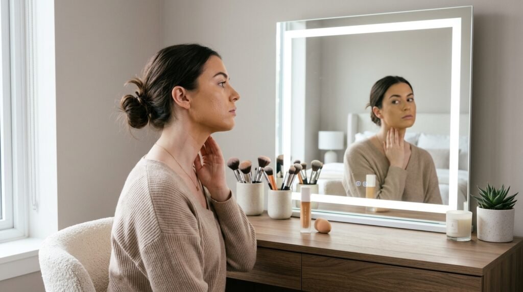 One mistake that is easy to commit is to stop your foundation just below the jawline, and in doing so, you will ruin the illusion of a natural glow. The change that occurs between the face and neck should preferably be unseen. Pulling the remaining product down to your collarbone may be useful in creating a more unified and professional look.