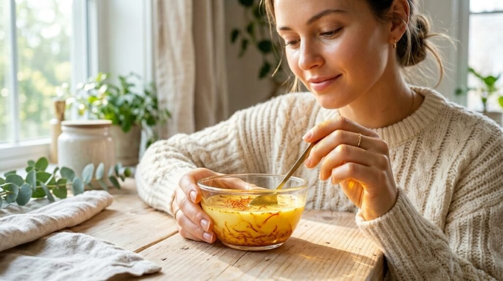 It is also possible to prepare a face mask with a simple blend of saffron threads in milk, along with some drops of oud oil that results in creating a face mask, nourishing in nature. It charms down tired skin, brightens and freshens skin.