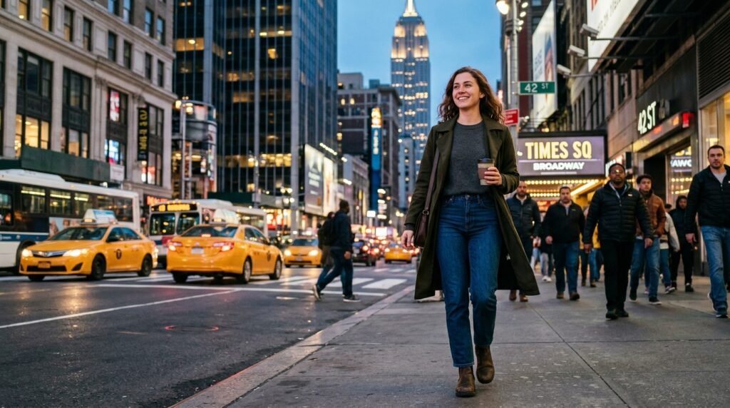 New York City is a place where style and practicality come together in a hectic environment. The reason why this shade can be a good choice is that it goes equally well with running errands during the day and going out at night without having to change the entire outfit.