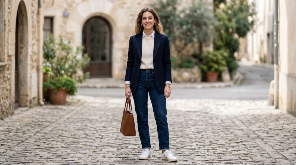 This denim color appears to harmonize quite well with neat shirts, gentle sweaters, and tailored jackets. Since it will not overshadow the other pieces, it might be a good idea to make different outfits with a feeling of balance and being natural.
