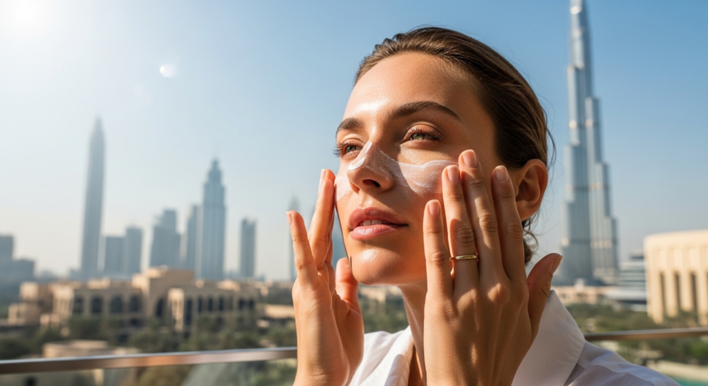 In Dubai, an unguarded exposure in the sun results in pigmentation, inflammatory reactions, and collagen disintegration, which skin brightens after repeated exposure. Application of SPF of 50 on a daily basis is more than mere protection; it is the very best long-term glow investment anywhere.