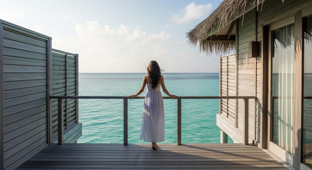 The Maldives serves as the ultimate destination for complete relaxation and the overwater villas which Priyanka visits show how artists use “infinite blue” to create an optical illusion that sky and ocean merge at the moment of first sight.