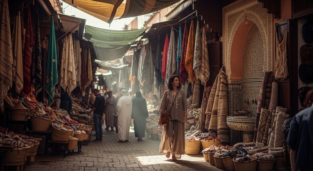 She explored the Moroccan marketplaces where market vendors sold their goods through direct contact with customers and the tile work of The Riads together with the terracotta colors of city walls creates a stunning visual display which has become the foundation of her fashionable style.