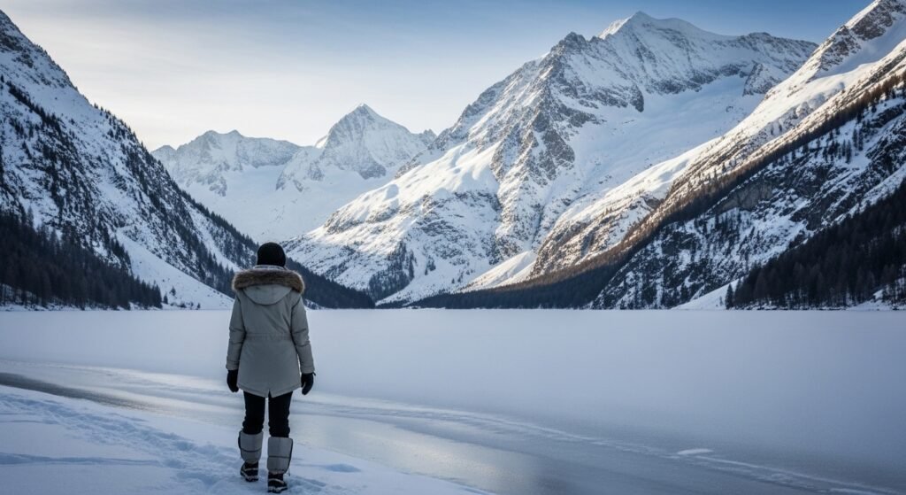 The snow-covered mountain views of Switzerland which Priyanka experiences during her trips come to life when she switches from heels to snow boots. The alpine lakes create a natural space which brings fresh air to the mountains while the desert’s warm climate creates a distance from the warm desert climate.
