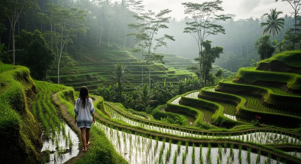 She returned to Bali to concentrate on its rice terraces. The endless layers of vibrant greenery provide a “breath of fresh air” and a spiritual calm which she considers necessary for mental health.