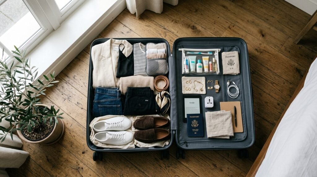 The most fashionable tourists have the lightest bags. Self-confidence, good cuts, and two or three beauty products that have become a signature spell more than an over packed wardrobe ever would. Always arrive and travel freely, also pack intentionally.