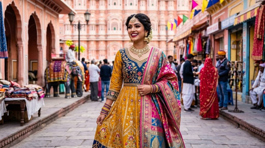 Mumbai and Jaipur craved color, ornamentation, and festivity. Officially, anarkali suits, dupatta made of silk, and traditional jewelry were very beautiful tributes to local culture. A base of full coverage, striped eyes, and a deep-colored berry lip made the complete look with a veritable feeling of happiness.