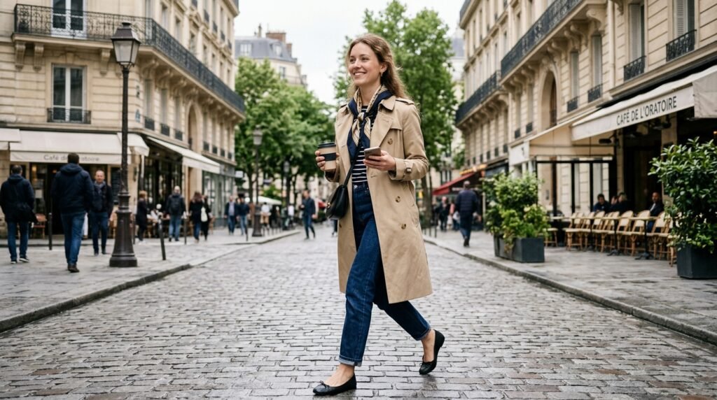 What Paris needed was one ideal trench coat, straight leg jeans, ballet flats, and a silk scarf. Skin first makeup: serum, tinted SPF, and a nude lip were added to the already Parisian look everyone tries to attain, but hardly anyone attains.