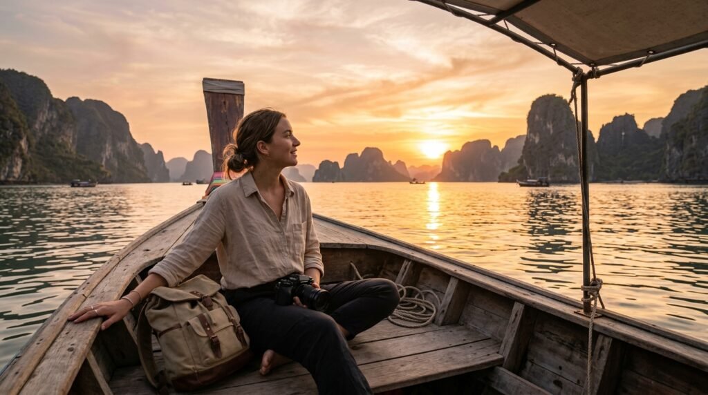The most memorable experience on the trip may be getting into a slow boat and taking a ride as the sun sets. The light striking the limestone cliffs usually brings about a glow that cannot be captured by photos.