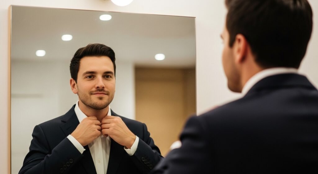 Well-fitting clothes that are neither too tight nor too loose are also a good choice of clothes and help in improving your body language and provide a almost automatic feeling of confidence.