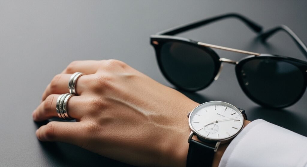 Delicate details such as watches, rings or sun glasses can perfect your appearance without being too much.