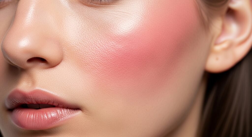 Blush has been used in providing freshness. Pinks and peaches of soft color were mixed very well in order to provide a healthy and young glow.