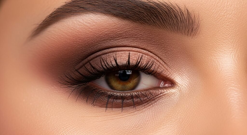 Eye makeup was dominated by the use of neutral colors. Things done in soft browns, warm nudes, and a little glitter made the look three-dimensional and yet elegant and wearable.