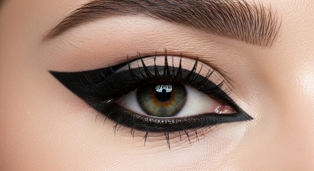 Winged eyeliner of the old school was on a high profile. Defined lines provided support and drama, and raised the eyes making them shine in the blazing lights.