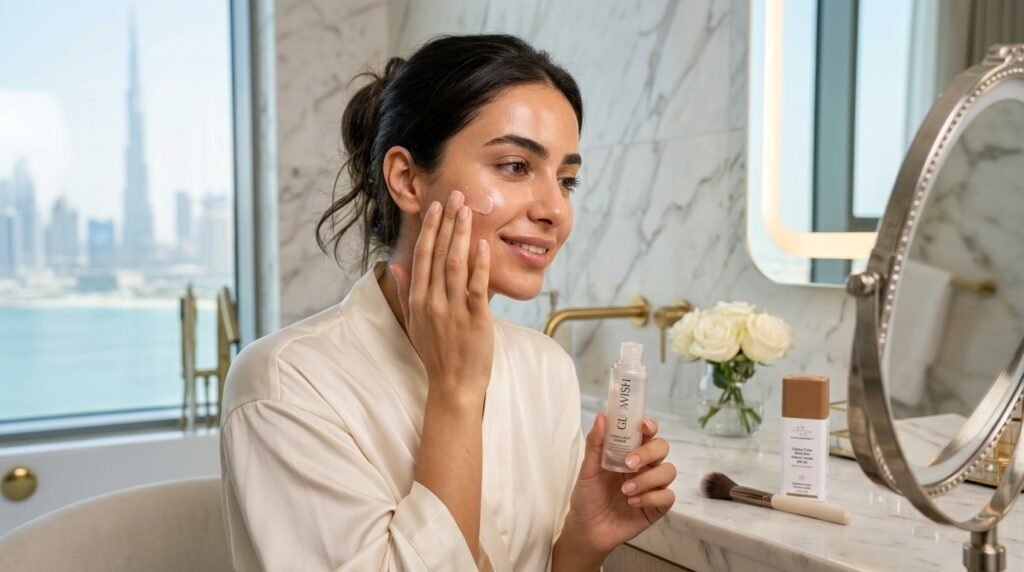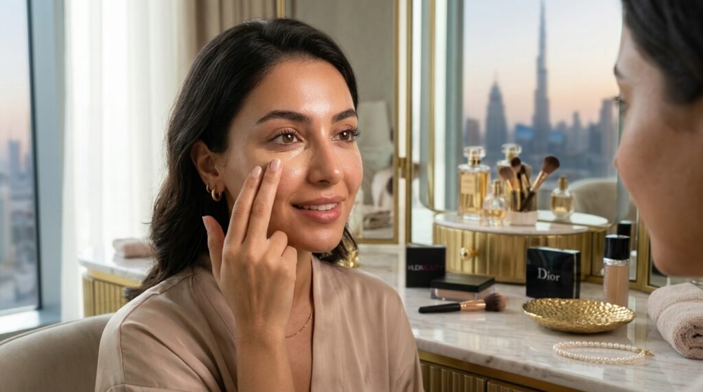 No glam appearance can withstand the heat in Dubai without a good base of preparation. The hydrating primer used over SPF forms a flawless, smooth base that keeps one looking fresh and flawless all day and all night.