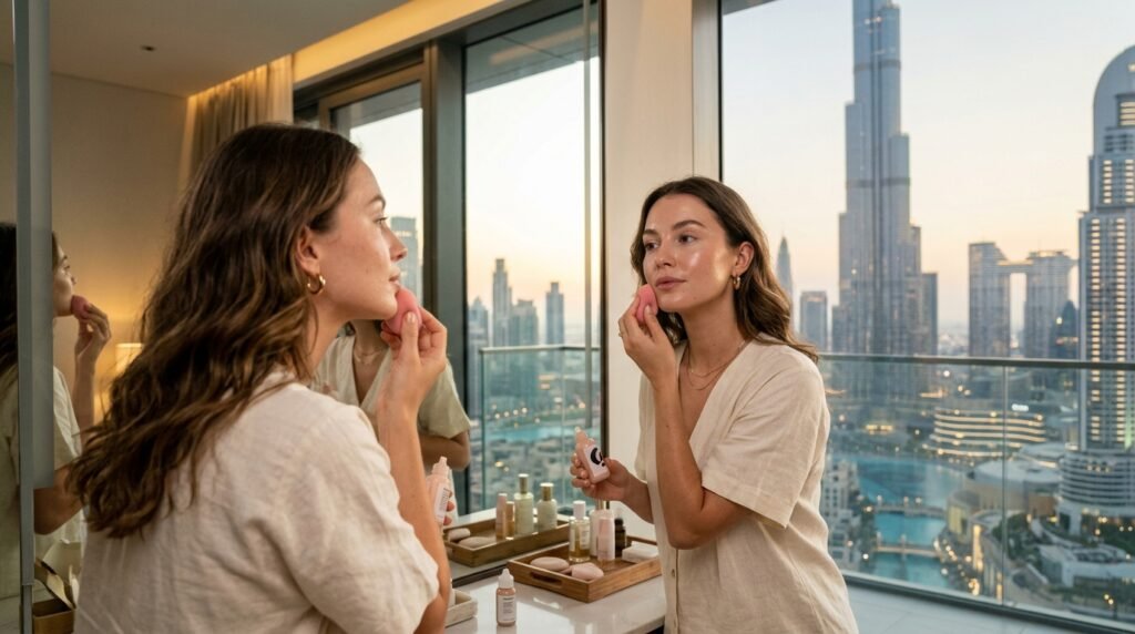 Ten minutes. Full glam. Dubai ready. People could not trust that until they saw it with their own eyes. The aesthetic which has been halting fingernails and full comment sections on social media all week is not complex, costly, or entrusted to professionals in makeup. It consists of five strategic products, one technique concentrated and the willingness to fully possess all the steps involved.
