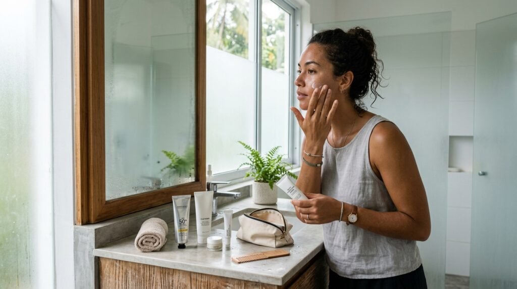 Traveling to a tropical beach with humidity after the dry winter needs a swift routine change. Use of lightweight gel moisturizer on humid areas will help to avoid the greasy layer, and oily creams are still a better choice in high-altitude or desert areas.