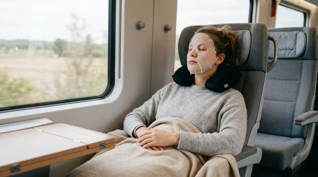Although it may seem like a bit of an added cost, a long-haul flight can be a game-changer with a hydrating hydrogel mask on. These masks provide a physical barrier that assists in keeping the moisture contained within the dry cabin air as you manage to get some sleep.